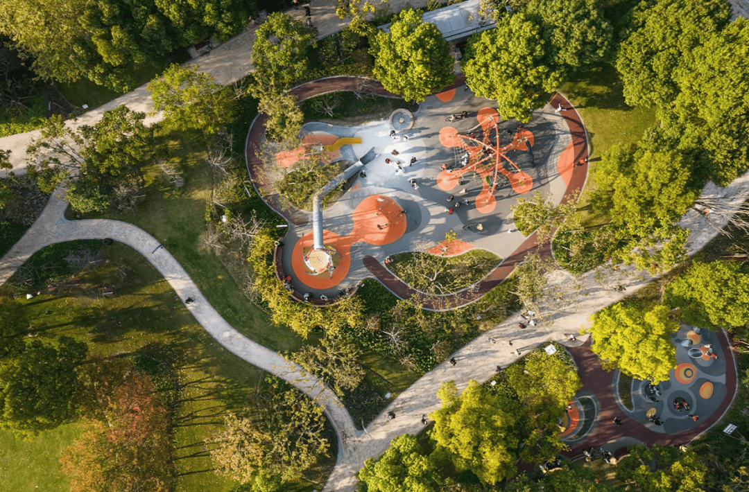 更厉害的是高线公园,中兴路一号的“高线公园”给人留下深刻的印象。而这次在中興傲舍进一步升级,打造了约6000方的高线公园,并融入首尔Parkside园畔的规划理念,以立体视角融合远景的中兴公园、中景的绿野街区、近景的高线公园与地库光厅,营造四重立体公园体系。