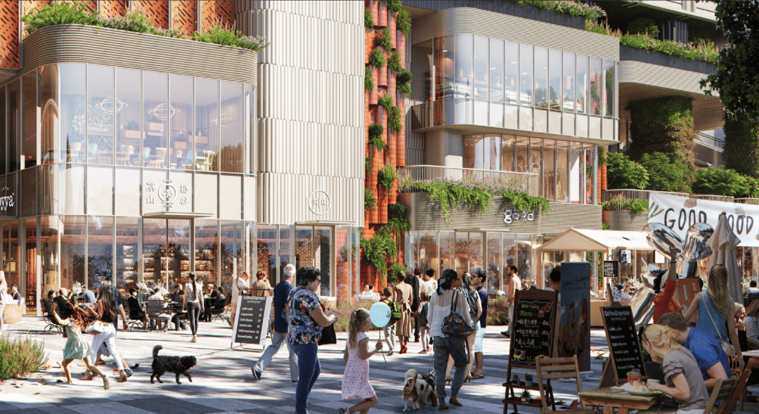 项目以上海里弄为原型,打造约3万方公园社交型商业,这种商业业态打破传统社区规划边界,将商业与自然、人文、居住等功能融合共同通。