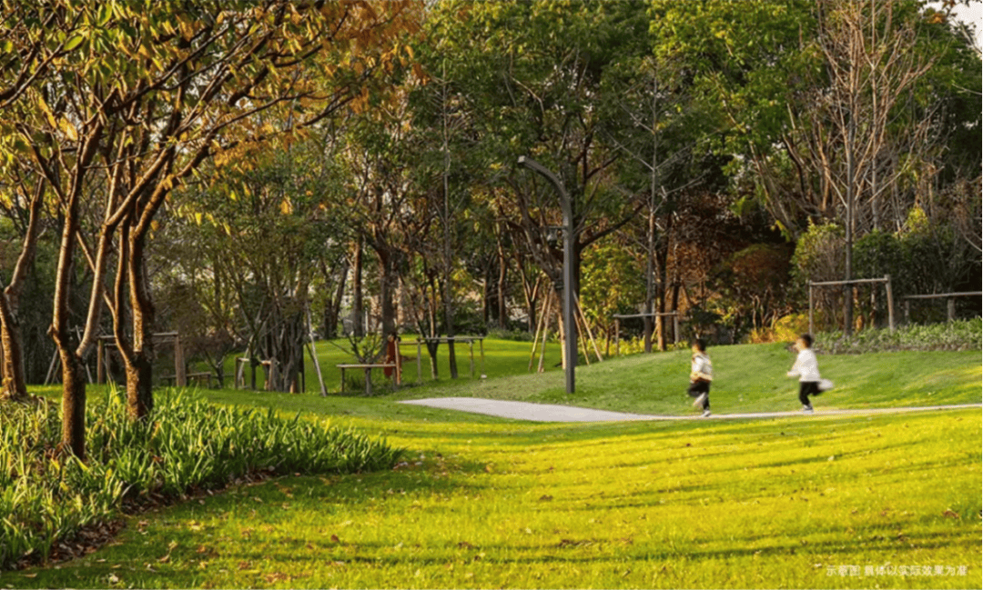 项目在街边的转角、街区的外廊,均打造城市花园长廊,超级绿核枢纽45度角贯穿街区,南向出门即享由万科代建的中兴公园,公园绿意被充分引入中心广场……